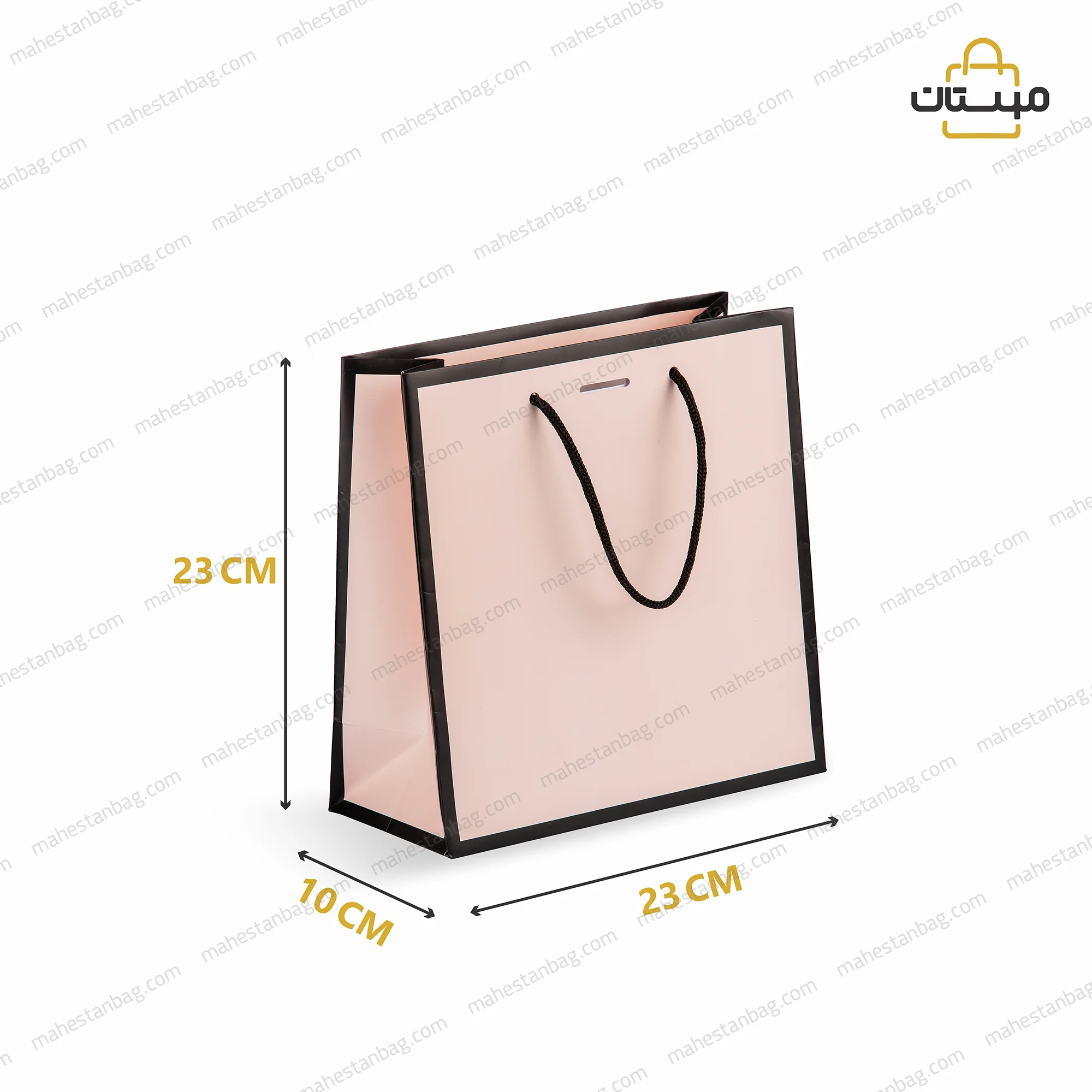 - ساک دستی گلاسه صورتی ساخته شده از کاغذ گلاسه با کیفیت